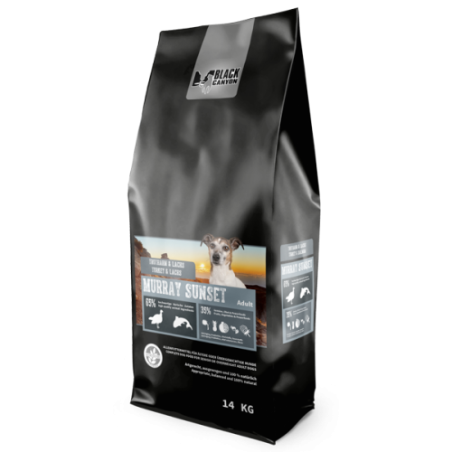 BLACK CANYON Murray Sunset Senior – Turkey & Salmon è un cibo completo di alta qualità, appositamente formulato per soddisfare le esigenze di cani più anziani o sovrappeso che hanno bisogno di meno calorie ma più proteine. Con gli ingredienti principali tacchino e salmone, questo alimento non solo offre al tuo cane un sapore delizioso, ma anche preziosi acidi grassi omega-3 che supportano il sistema cardiovascolare e il mantello. Questo menù contiene molte vitamine naturali, minerali e fibre provenienti da frutta e verdura che supportano la digestione e il sistema immunitario. Questo cibo per cani è privo di coloranti, aromi e conservanti artificiali ed è quindi particolarmente delicato per il tuo cane. Regala al tuo cane una vita lunga, sana e felice con BLACK CANYON Murray Sunset Senior – Tacchino & Salmone – il cibo che il tuo cane adorerà!