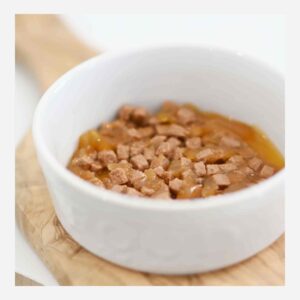 Die Frischebeutel in Form von Hackgelee wurden speziell für Ihr Kätzchen entwickelt. Das Hackfleisch ist klein, um die Aufnahme und bessere Aufnahme durch Ihr Kätzchen zu erleichtern. Das Gelee trägt dazu bei, die Frische und Feuchtigkeit des Hackfleischs zu bewahren. Dieses Rezept ist auch für erwachsene Katzen und besonders empfindliche Katzen geeignet.
